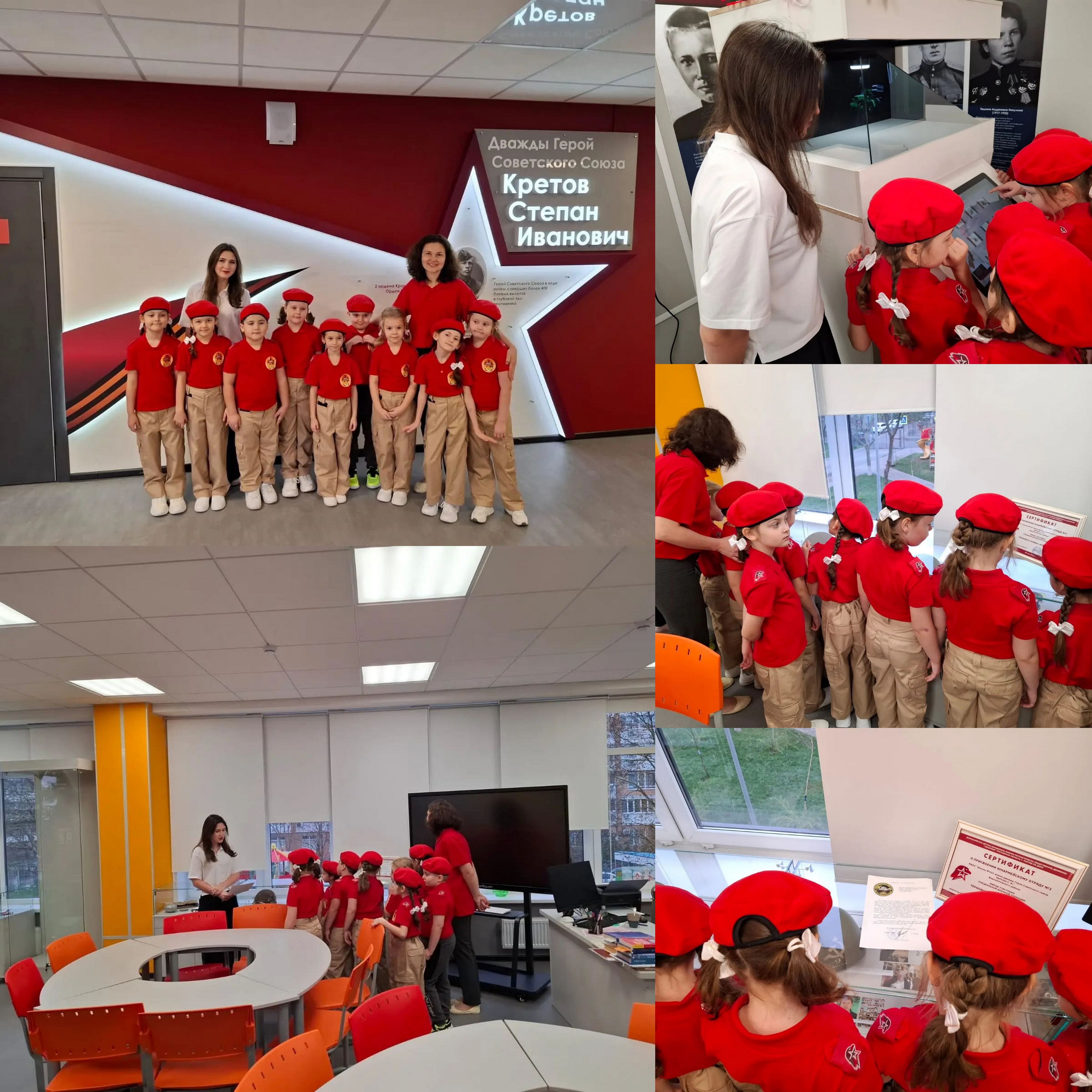 В рамках реализации проекта равный равному наша ученица 11 «Б» класса Терентьева Майя провела музейную экскурсию юнармейцам - воспитанником детского сада. Ребята ознакомились с нашей экспозицией Герою - участнику СВО Терновому Р. А., а также с удовольствием рассмотрели технику ВОВ в проекции 3D - моделирования.